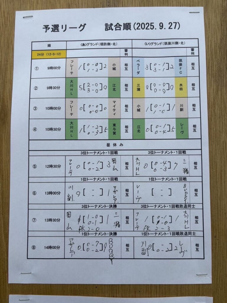 【U9結果】令和7年度大川カップ少年サッカー大会U-92025.9.27(大野島河川敷G)
