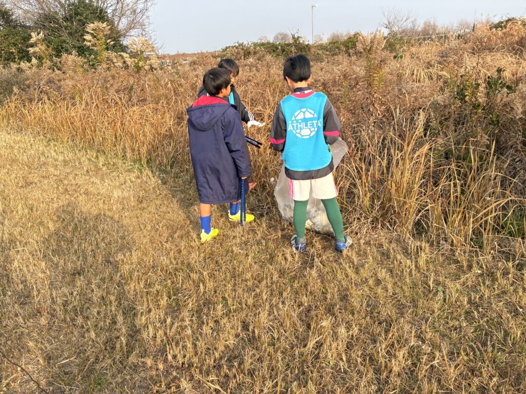 蹴り納めの前に、選手と保護者さま参加していただき、日頃使用しているグランド周辺のゴミ拾いを行いました。